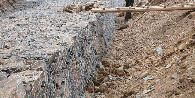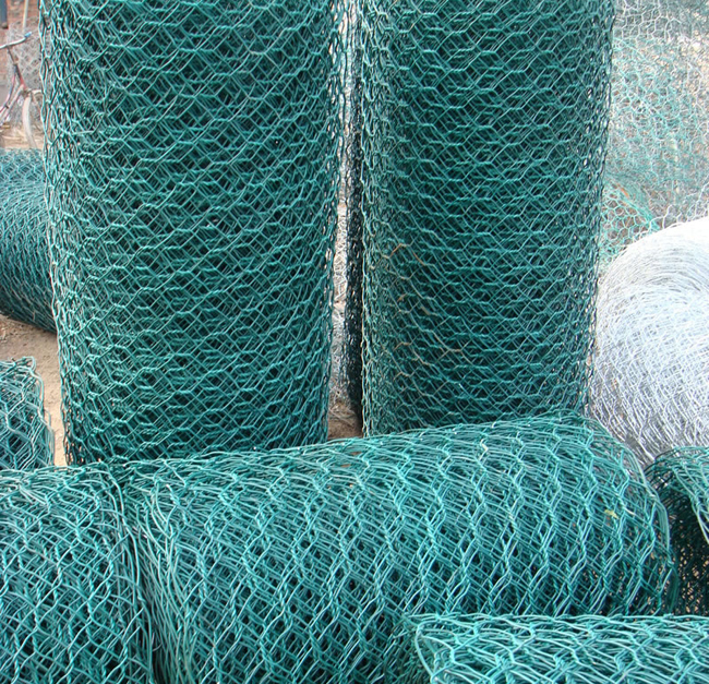 包塑石籠網(wǎng)是使用機器將金屬線材單向搓捻兩周編織的六角形網(wǎng)(六角網(wǎng)) 制成的網(wǎng)箱,厚度在0.15-0.5m(含0.5m),又稱石籠和護墊,石籠網(wǎng)墊由隔板分成若干單元格,為了加強石籠網(wǎng)墊結(jié)構(gòu)的強度,所有的面板邊端均采用直徑更大的鋼絲。 |